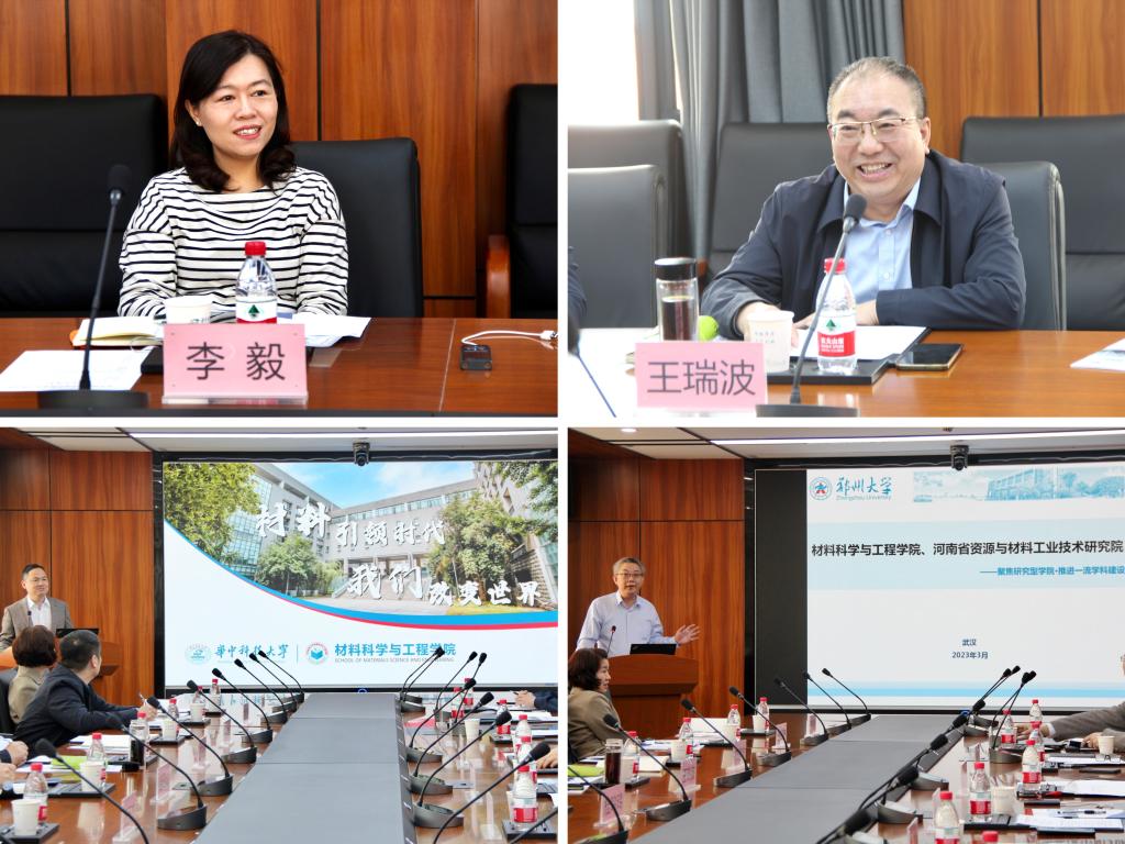 我院党委书记李毅对郑州大学材料学院来访表示热烈欢迎,郑州大学材料学院是华科材料学院的兄弟院校,学院希望能加强与兄弟院校之间的交流,互相学习,共同进步。郑州大学材料学院党委书记王瑞波表示,双方在学科建设、科研项目上保持着良好交流,更有优秀毕业生到对方学院就职任教的诸多案例,希望此次学习调研能促进双方的进一步发展。