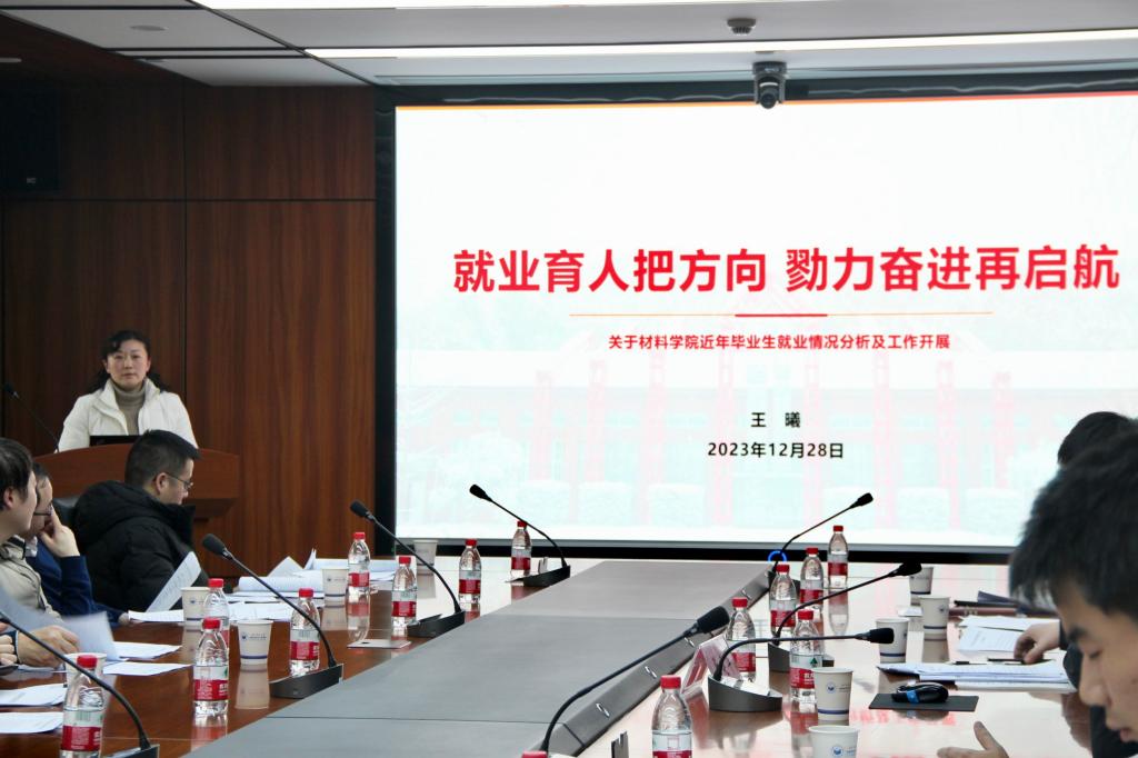 学院研工组组长王曦老师以“就业育人把方向 戮力奋进再启航”为题介绍学院学生就业工作情况。她分析了近五年学院就业情况和提升学生就业质量方面的举措,今后学院将从拓展就业服务范围、加强师生日常交流、尊重学生自身选择几方面着手开展工作,不断为长江经济带发展输送人才。