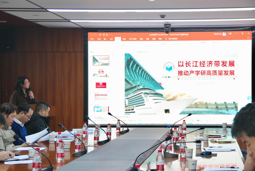 学院科研办苏瑾老师作“以长江经济带发展推动产学研高质量发展”主题汇报。她重点介绍了学院长江经济带产学研合作现状,学院已与多家长江经济带企业建立合作关系,未来将从高端制造装备产业、新能源产业、新材料产业等6大方向加强产学研落地。