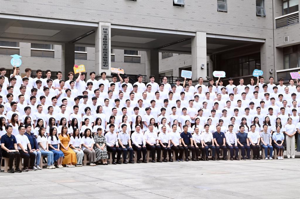 (通讯员 王箫侣)6月3日,材料学院2024届本硕博全体同学在先进制造大楼西楼广场拍摄毕业照,校长尤政院士,原校党委书记、我院教授李元元院士带着对毕业生的祝福到现场与毕业生合影留念, 参加合影的还有学院部分老师代表。毕业生张程同学主持毕业合影。
