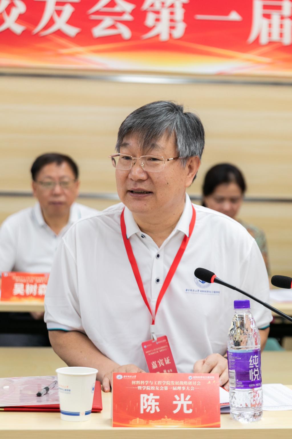 随后,名誉会长陈光院士致辞。他首先感谢母校和材料学院对他的培养教育之恩,他深情回忆了在华中工学院学习时受到恩师熊国庆、黄志光等一批老教授的无私指导,他说母校材料学院是他学会做科研的地方。他表示未来将和新一届理事会一起,进一步增进材料学院校友会的凝聚力,把校友会建设成为校友们互助发展的平台、友爱温馨的家园。
