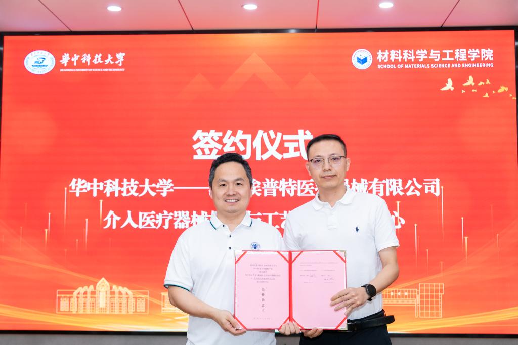 接下来,进行签约、捐赠仪式。深圳惠泰医疗创始人成正辉校友促成学院与惠泰旗下湖南埃普特医疗器械有限公司达成共建合作意向,湖南埃普特公司研发总监张效凯先生与学院副院长翟天佑老师分别代表单位签订合作意向书。张效凯介绍了企业发展建设情况,并表示现在学校的社会影响力日益扩大,学院的发展也越来越好,通过加强校企合作,共创校友与母校互惠共赢的发展新局面。