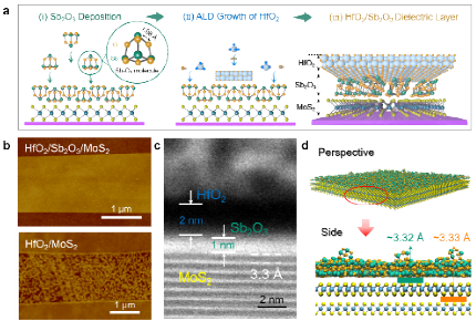 图1. Sb2O3/HfO2复合介电层的制备及表征。