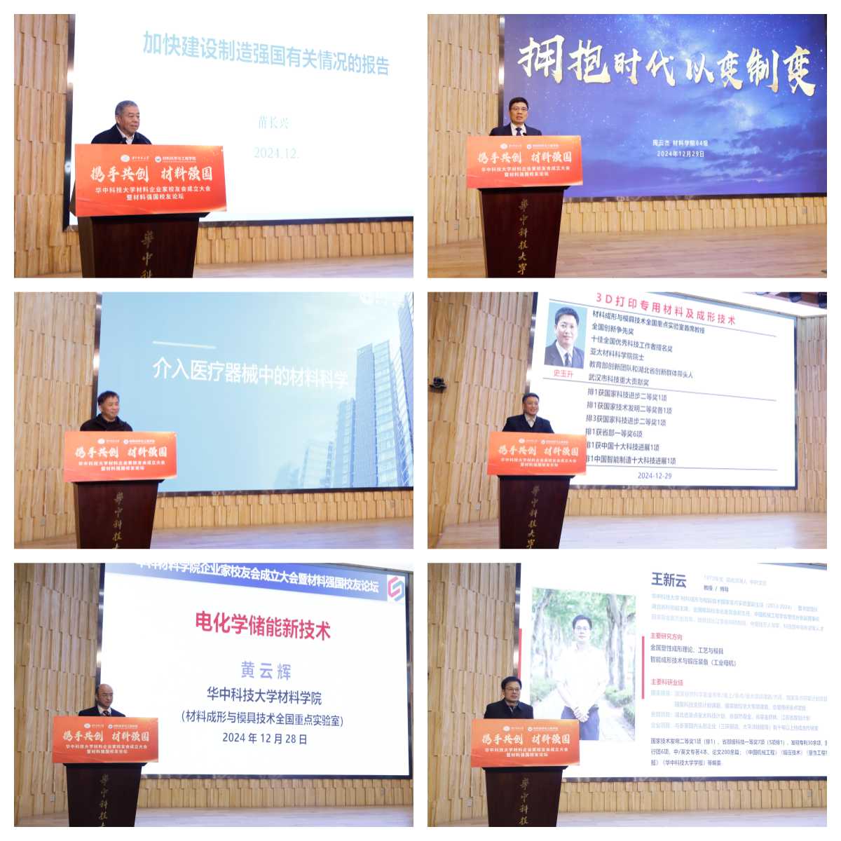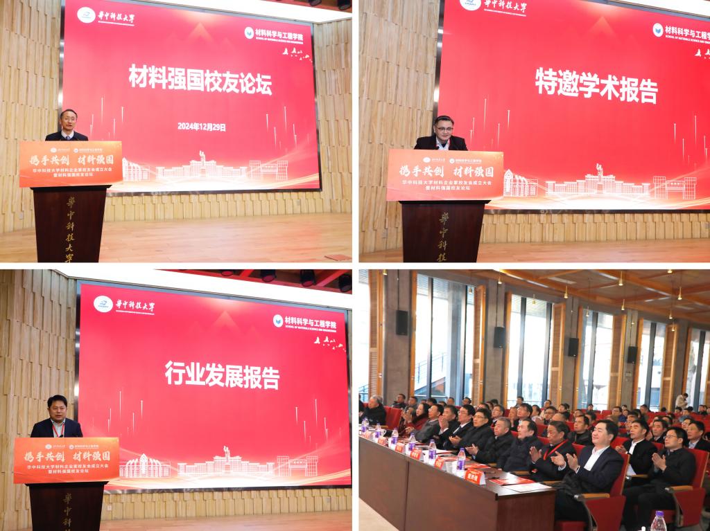 苗长兴、周云杰、成正辉分别以“加快建设制造强国”“拥抱时代 以变制变”“介入医疗器械中的材料科学”为题作主旨报告。材料学院周华民教授、史玉升教授、黄云辉教授、王新云教授、周建新教授分别作特邀学术报告;材料学院校友梅绍华、郦强、吴卫平、梅敬成、刘岩、易平、丁晓飞分别作行业发展报告。
