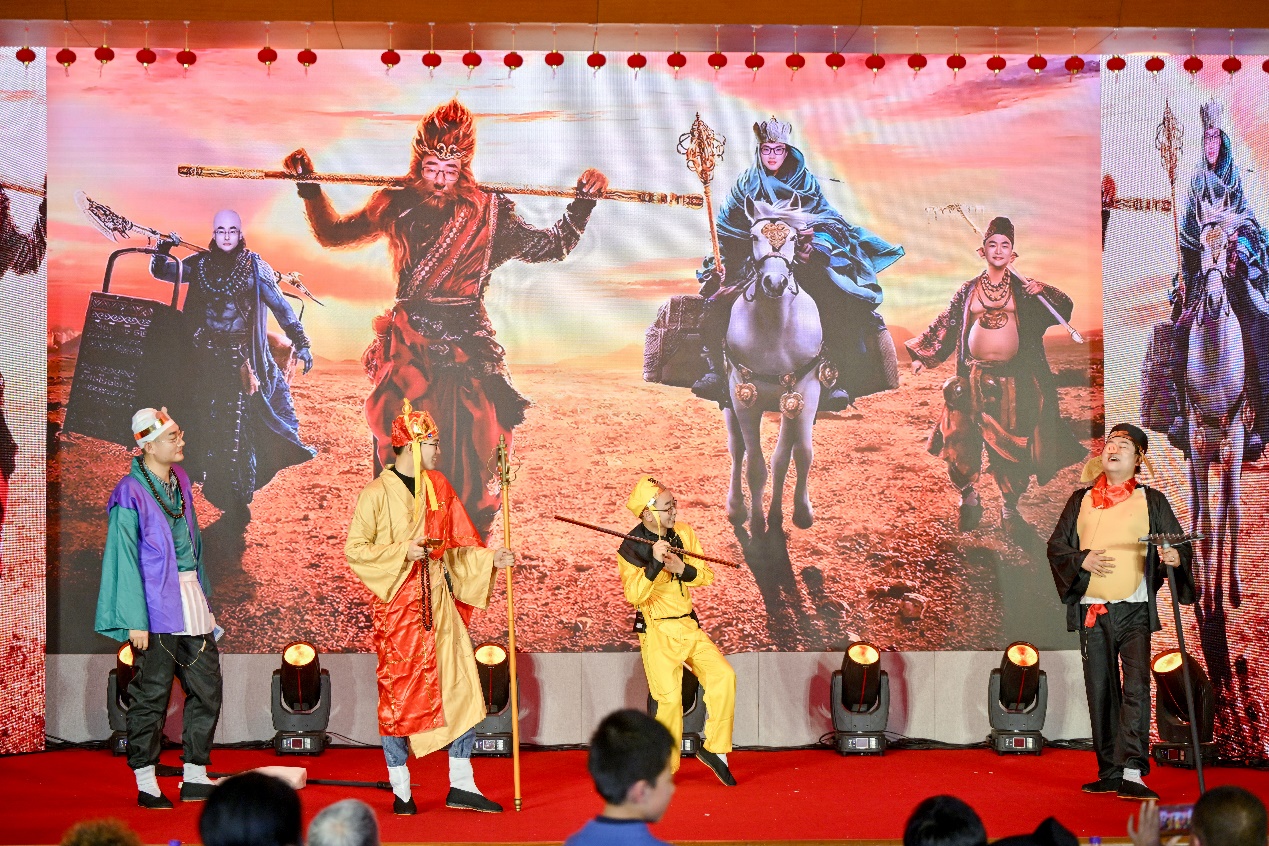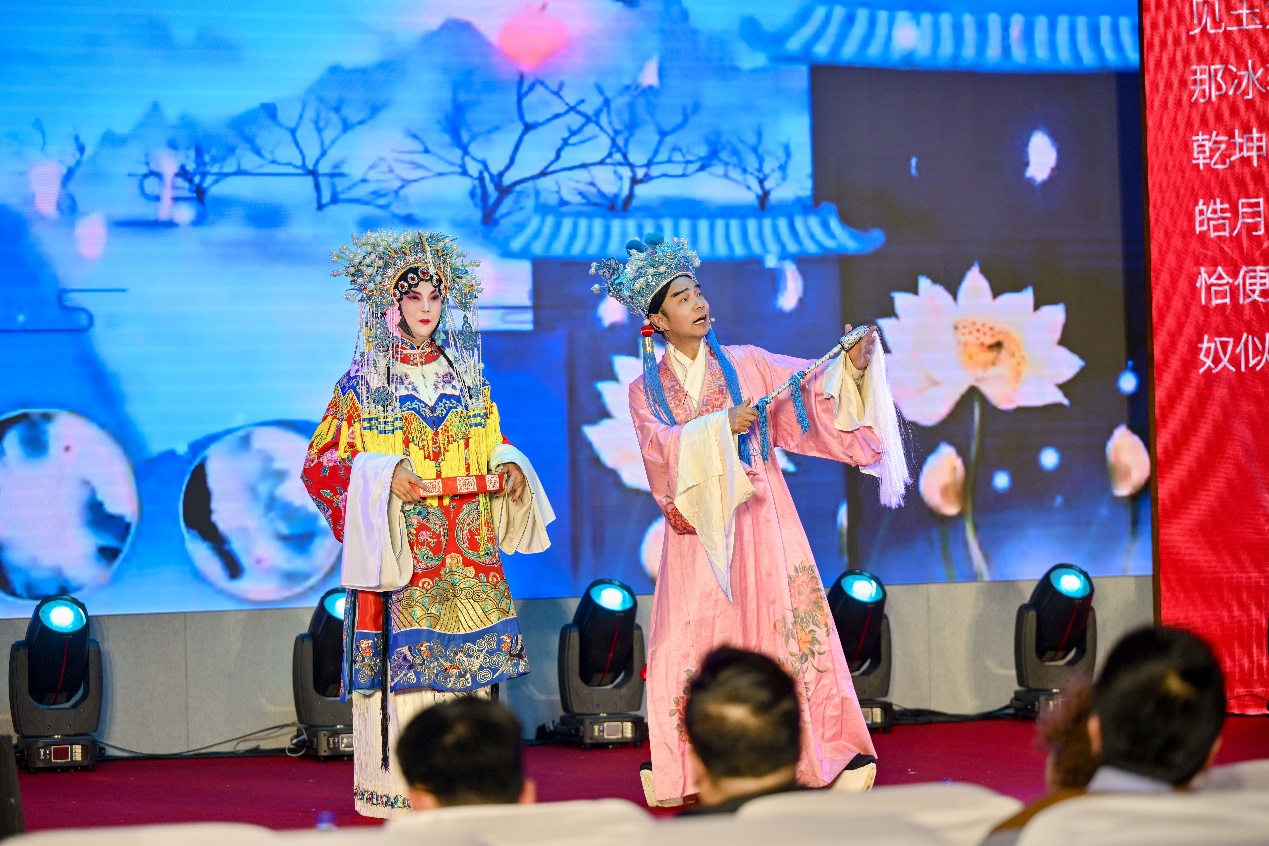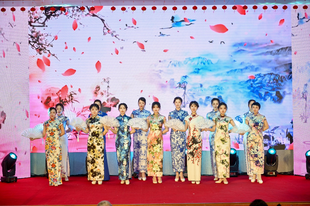 校党委宣传部副部长顾馨江、校党委教师工作部副部长张发雄、81级焊接专业校友申学军、81级焊接专业校友朱援祥、99级材料成型及控制工程本科校友张伟、01级材料加工工程研究生校友冯仪、湖北省京剧院国家一级演员宦桂珠等参加活动。联欢会首先总结了2024年度学院取得的一系列突出成果,为作出突出贡献的教职工代表敬献鲜花。学院各中心与离退休老年艺术团的老师、学生代表们以演唱、京剧、小品、武术、朗诵、旗袍秀、创意乒乓球等方式,通过12个充满创意的节目,为现场观众献上一场新春盛宴。