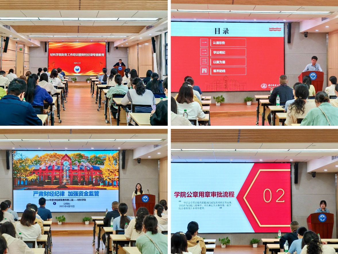 (通讯员 许文佳)为提升学院整体财务工作水平、提高教职工财经纪律意识,筑牢廉洁防线,4月10日下午,材料学院在先进制造大楼西楼A308开展2025年财务工作培训暨财经纪律专题教育。学院各课题组负责财务工作相关人员参加培训,院党委书记李冲提工作要求,校纪检监察机构第一纪检监察室副主任刘欢、校财务处收入管理中心科长戴文婕作主题宣讲。学院党政办主任陈明主持培训。