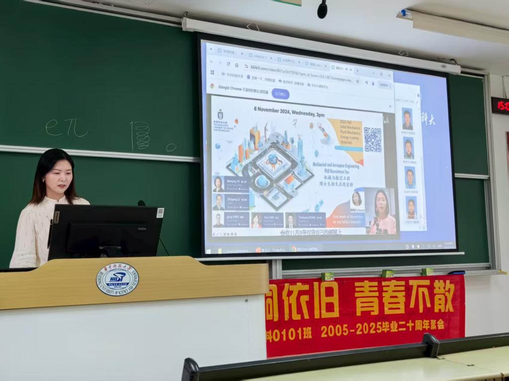 下午,西十二教学楼 N318 教室开启主题班会。屏幕循环播放老照片,军训、运动会等画面勾起回忆。校友们依次分享二十年经历,真挚话语打动在场众人。