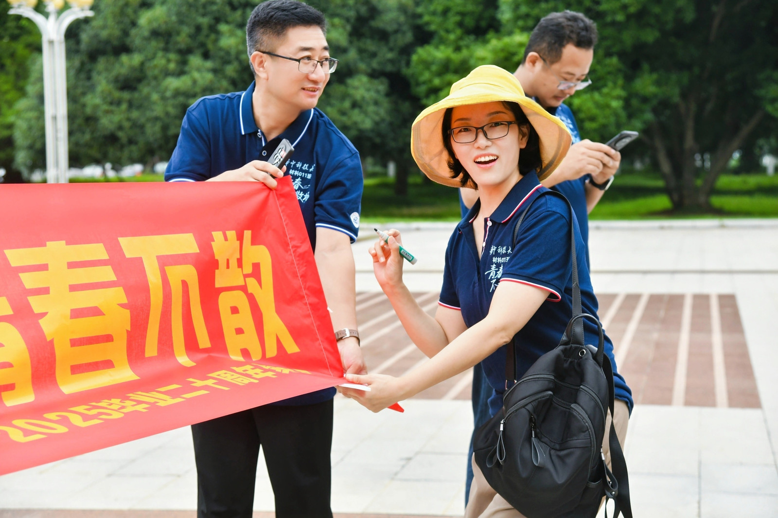 上午九点,南大门前热闹非凡。校友们身着统一班级文化衫签到,重逢的喜悦写在脸上,随后的班级合影,定格珍贵瞬间。