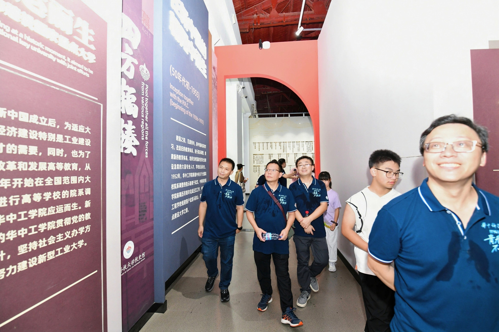 合影后,校友们走进校史馆,在讲解员引导下回顾母校发展历程。老照片与历史实物前,大家感慨母校二十载巨变,自豪感油然而生。