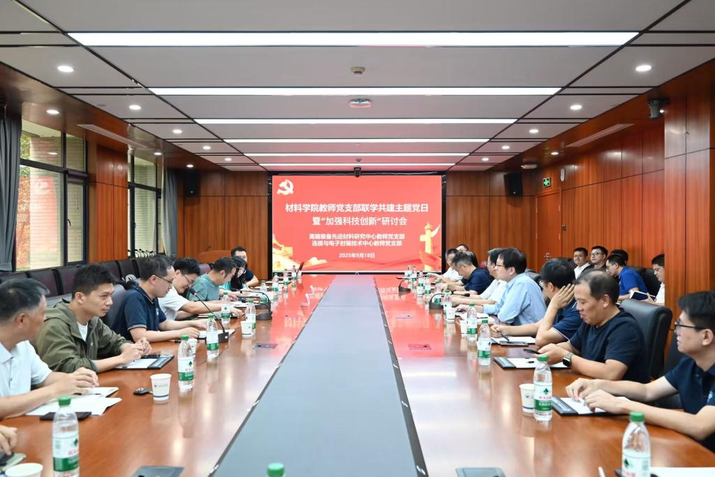 (通讯员 王箫侣)为深入贯彻服务国家战略需求导向,以党建引领中心发展,9月18日,材料学院组织高端装备先进材料研究中心教师党支部、连接与电子封装中心教师党支部开展联学共建主题党日暨“加强科技创新”研讨会。科发院副处长吕新桥,学院党委书记李冲,副院长翟天佑、张诚,学院教师代表等参会。学院党委委员黄亮主持会议。