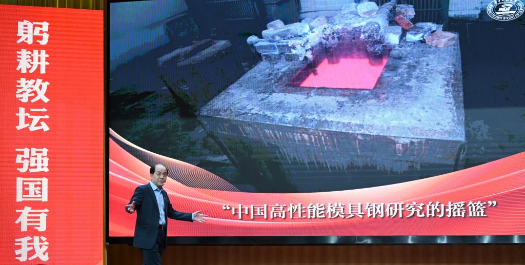 肖建中教授与潘杰教授以对话方式分享崔崑院士手写教案、耄耋之年学电脑,耗时 7 年著成钢铁巨著《钢的成分组织与性能》的育人故事。肖建中不禁哽咽,现场观众也红了眼眶。