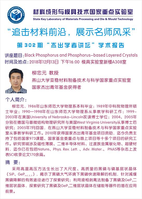第302期杰出学者讲坛——燕山大学柳忠元教授