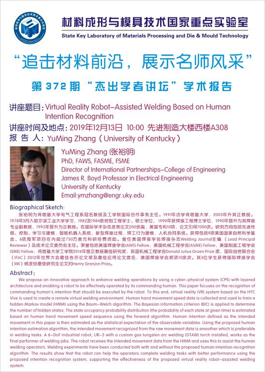 第372期杰出学者讲坛——YuMing Zhang( University of Kentuchy)