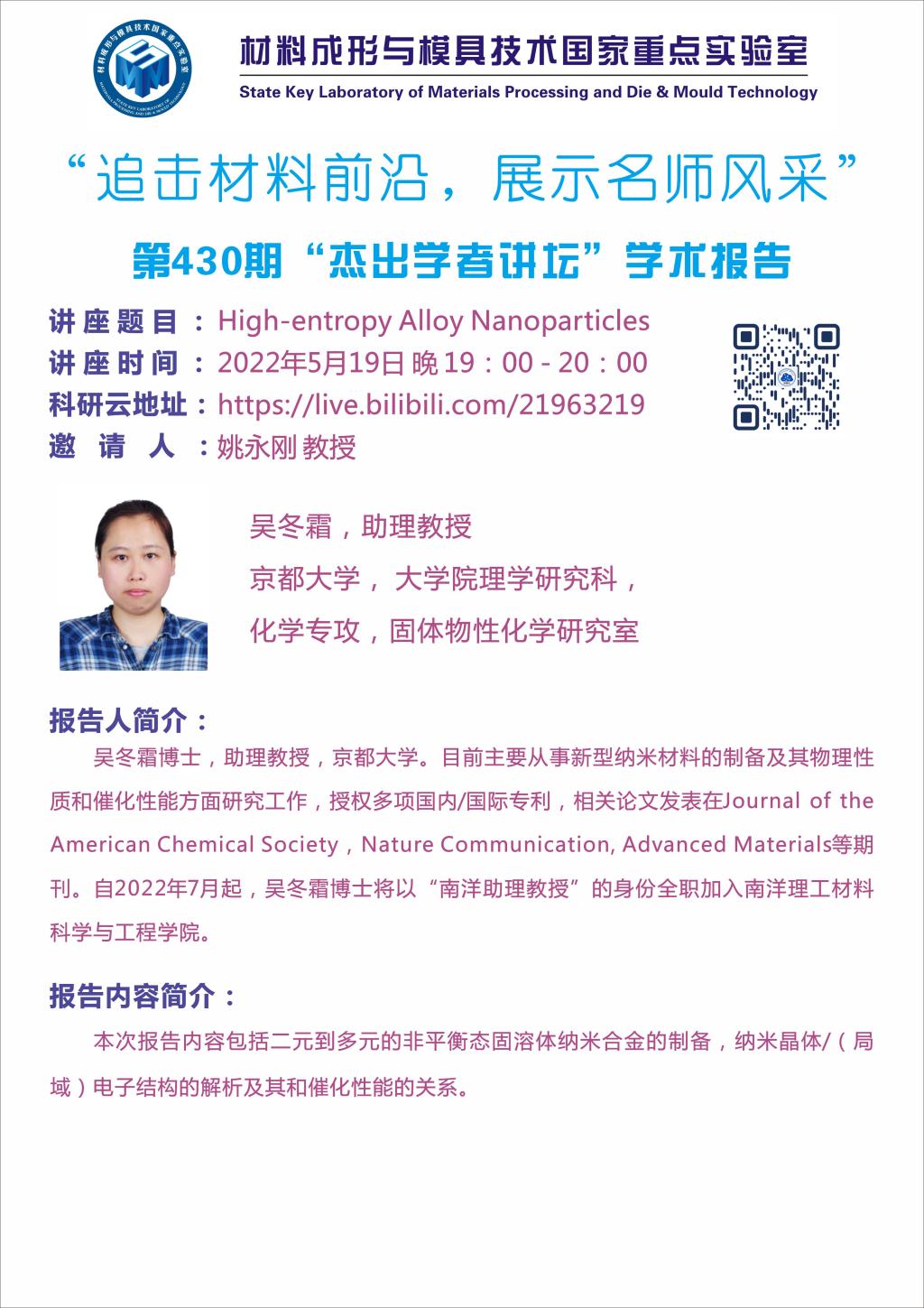 2022年5月19日"杰出学者”讲坛:High-entropy Alloy Nanoparticles