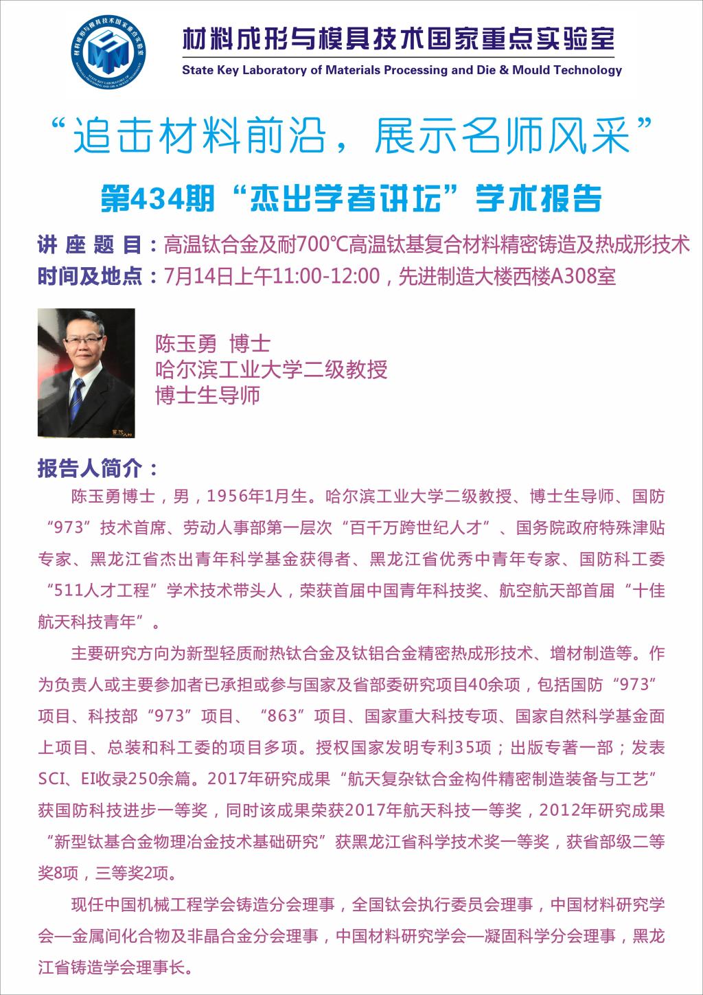 7月14日"杰出学者”讲坛:高温钛合金及耐700℃高温钛基复合材料精密铸造及热成形技术