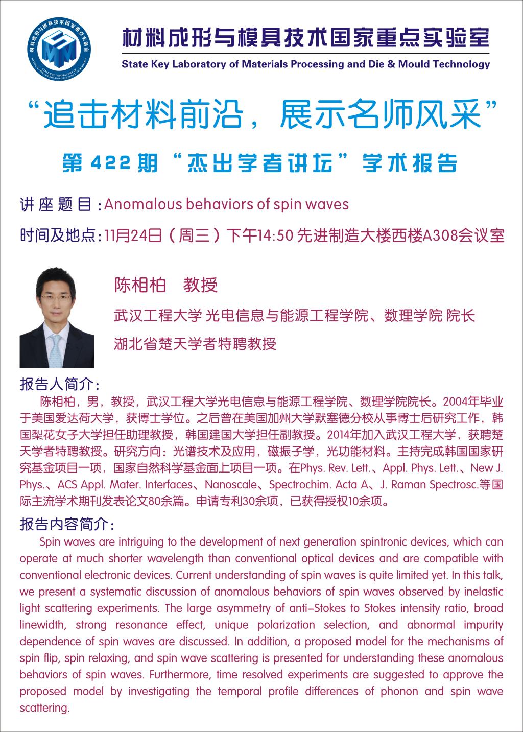 2021年11月24日"杰出学者”讲坛:Anomalous behaviors of spin waves