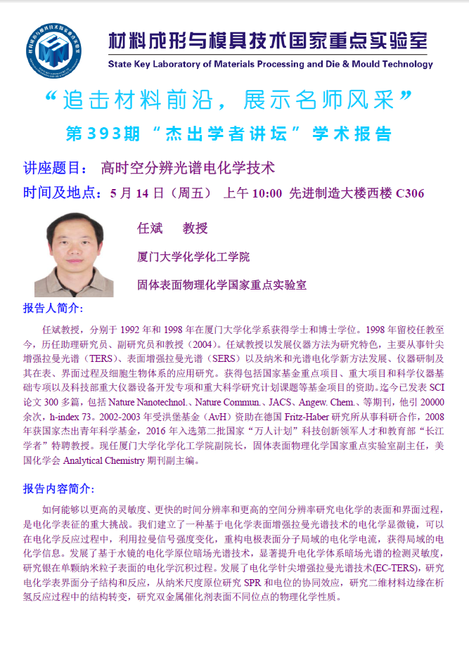 第393期杰出学者讲坛-厦门大学任斌教授