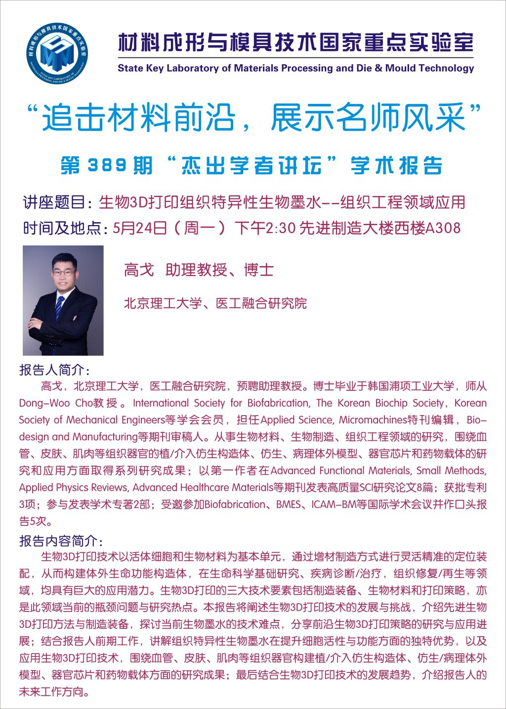第389期杰出学者讲坛——北京理工大学助理教授高戈