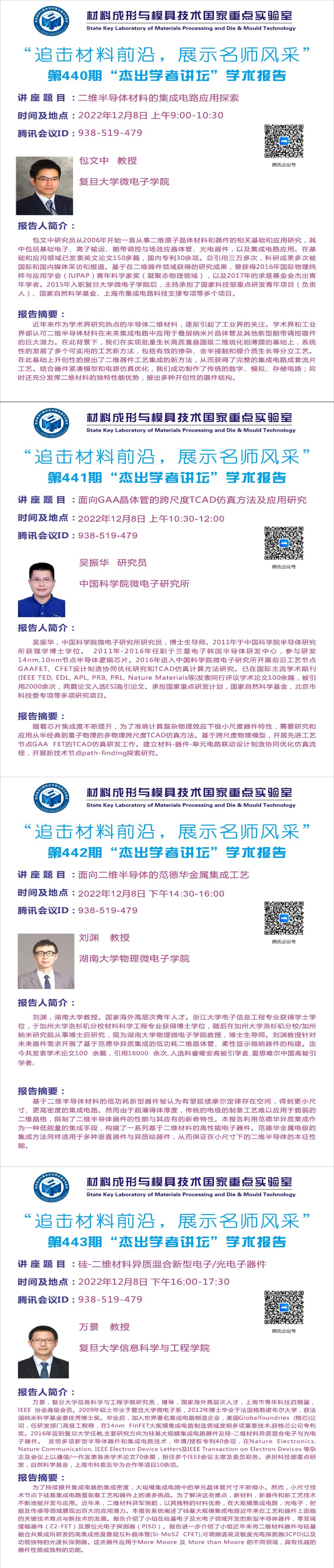 2022年12月8日“杰出学者讲坛”:二维半导体材料的集成电路应用探索