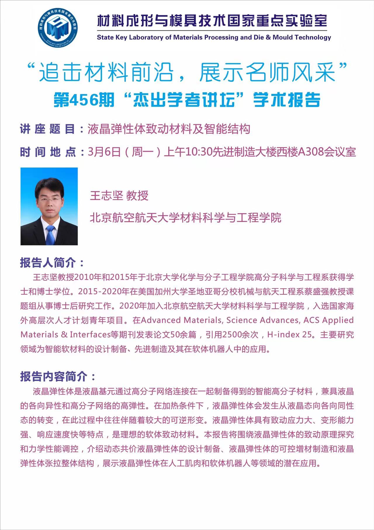 2023年3月6日“杰出学者讲坛”:液晶弹性体致动材料及智能结构