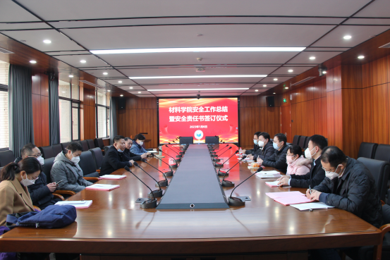 2023年1月6日下午,材料学院召开2022年度实验室安全管理工作总结会议暨2023年安全责任书签订仪式。会议由学院分管安全工作副院长袁新华主持。学院党委书记李毅、学院院长周华民、领导班子成员、各中心支部书记及兼职安全员参加本次会议。