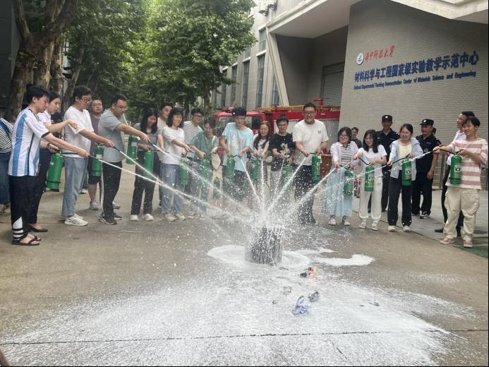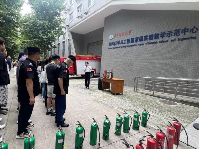 为贯彻中华人民共和国《消防法》《william威廉中文消防安全管理规定》,确保校园消防安全形势持续稳定,提高广大师生实验室安全意识及消防意识,加强师生火情应急能力。2024年6月21日下午15:00材料学院与校保卫处在新材料大楼前联合开展了2024年上半年消防培训和演练活动。全院50余名师生参加了本次消防培训活动,参与人员包括分管实验室安全的院长助理刘鑫旺教授、各中心、科室和课题组安全员、物业人员等。校保卫处治安与消防安全管理科陈嘉璇科长带领消防官兵指导本次活动。