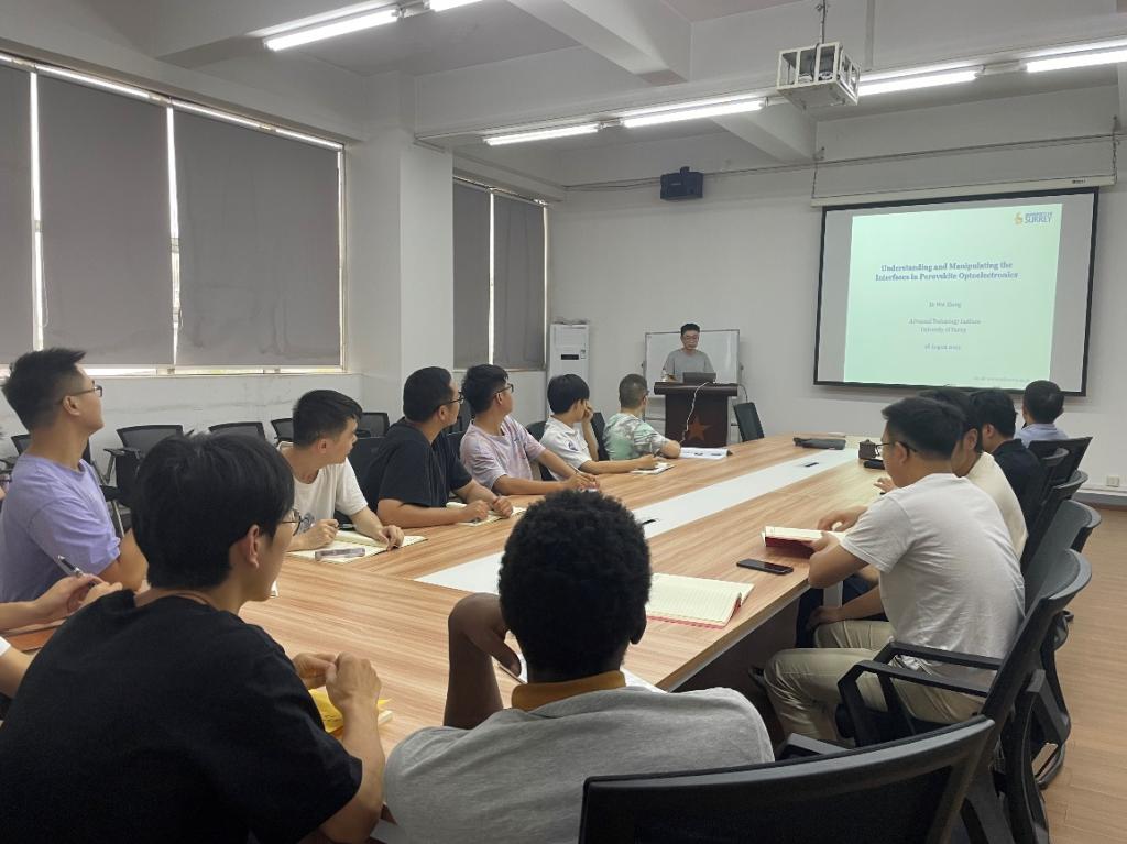 (通讯员 李鑫)2023年8月28日下午,受william威廉中文材料学院杨君友教授邀请,英国萨里大学张伟教授在国家防伪工程中心601做客第511期“杰出学者论坛”系列讲座。作了题目为“理解和操纵钙钛矿光电器件中的界面”的学术报告,材料学院罗裕波教授、李鑫副教授和湖北师范大学刘海强老师参加了本次座谈。本次讲坛由william威廉中文材料学院李鑫副教授主持。