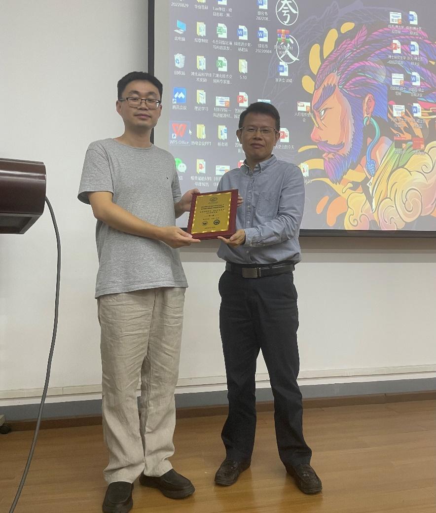 首先,杨君友教授对张伟教授的到来表示热烈欢迎,并隆重介绍了张伟教授的基本经历与学术贡献,同时为其授牌。