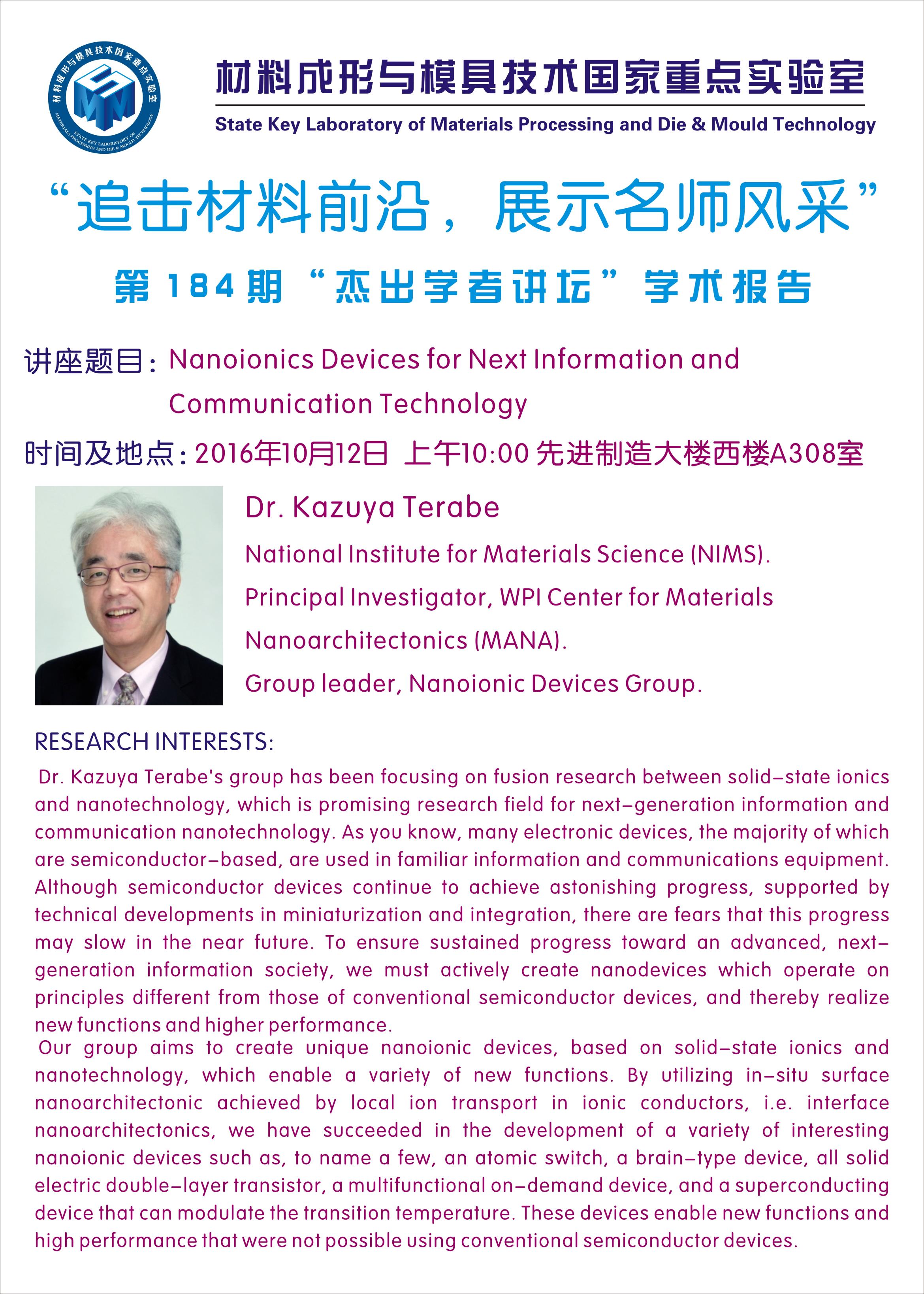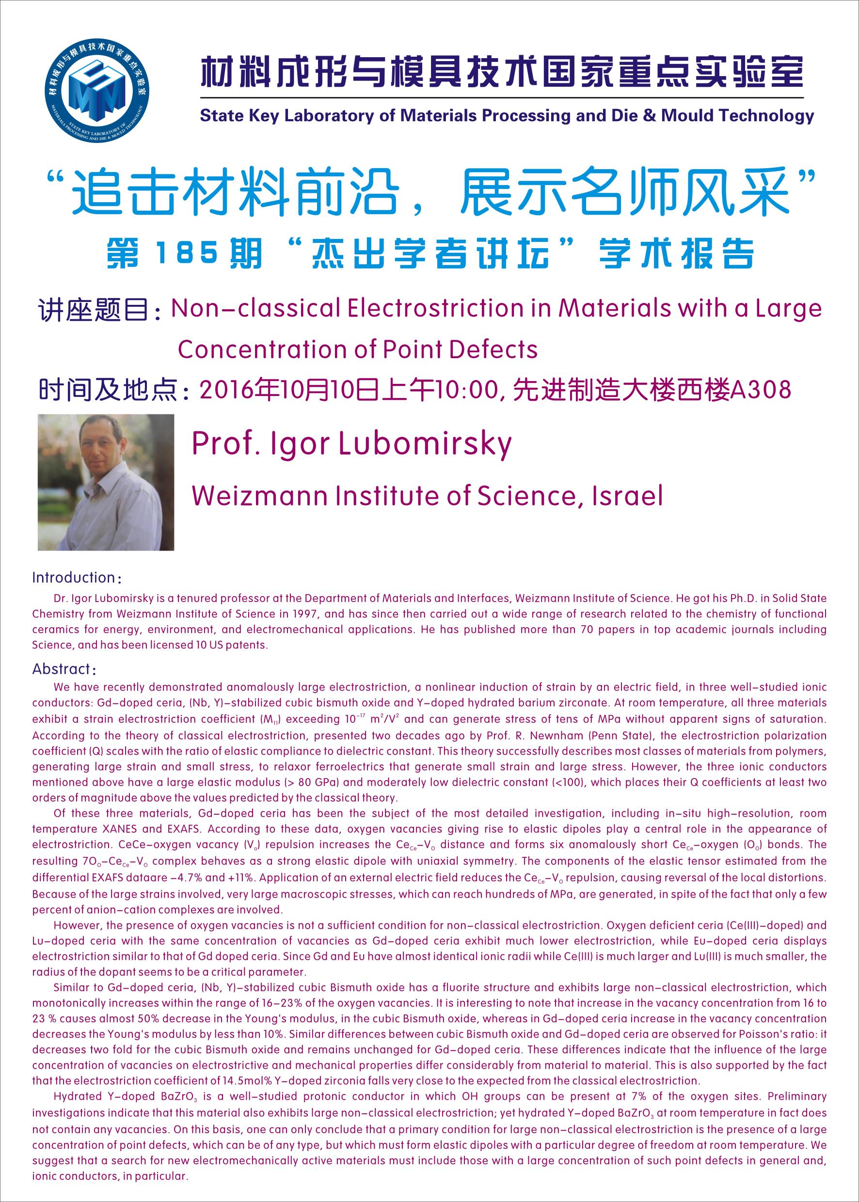 讲座题目: Non-classical Electrostriction in Materials with a Large Concentration of Point Defects 时间及地点: 2016年10月10日上午10:00, 先进制造大楼西楼A308 …
