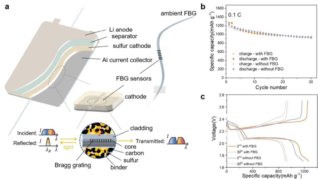 光纤用于锂硫软包电池的原位应力监测
